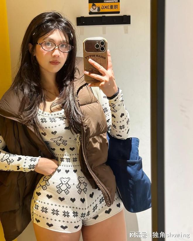 对于强行搭配羽绒服,穿搭于室外的话,个人不建议,毕竟其款式还是有别日常穿搭的衣服,此款连体服还是适用于居家穿着,如果你是个爱运动的人,居家运动时穿着还是不错的选择,其款式不次于健身服。比起健身服来说,此款连体服更加舒适。