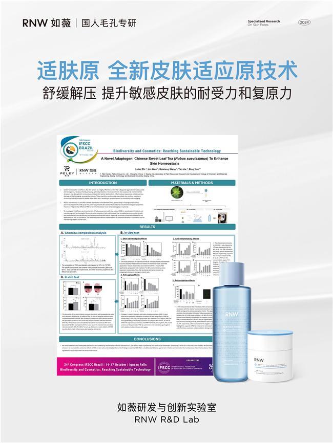 据悉,此次大会举行了90场科技成果演讲,发布了超过600份科研海报,全方位覆盖了化妆品科学的最新进展与前瞻探索。在这个被誉为全球化妆品界最高水平的学术舞台上,国人毛孔专研护肤品牌RNW如薇受邀参加,展示了三项重磅科技成果,一是根源改善毛孔油堵问题的皮脂调控技术—“清肌茶素”;二是增强敏感肌肤耐受力的“皮肤适应原”技术—适肤原;三是颠覆传统去黑头方式,以敷代撕“黑头导出科技”。