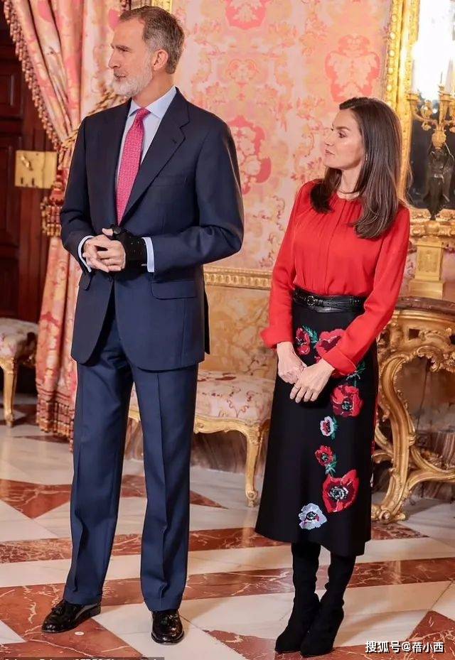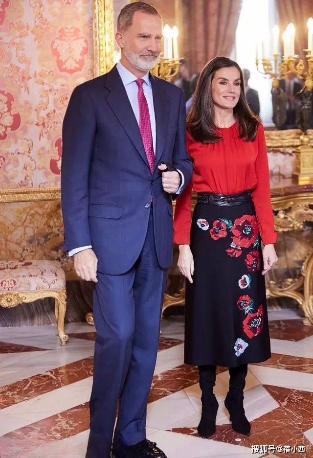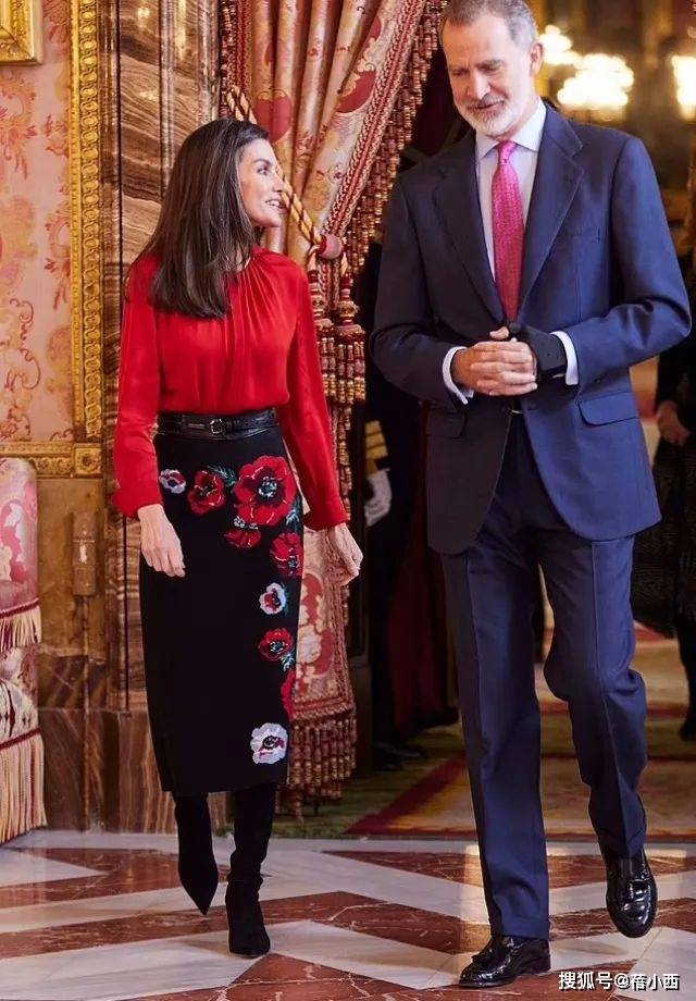 红色作为永不过时的经典色,象征着热情与活力。莱蒂齐亚选择的这件红色衬衫,裁剪合身,材质考究,既显贵气,又表达了她的自信。与黑色半身裙的搭配相得益彰,呈现出层次感十足的造型。