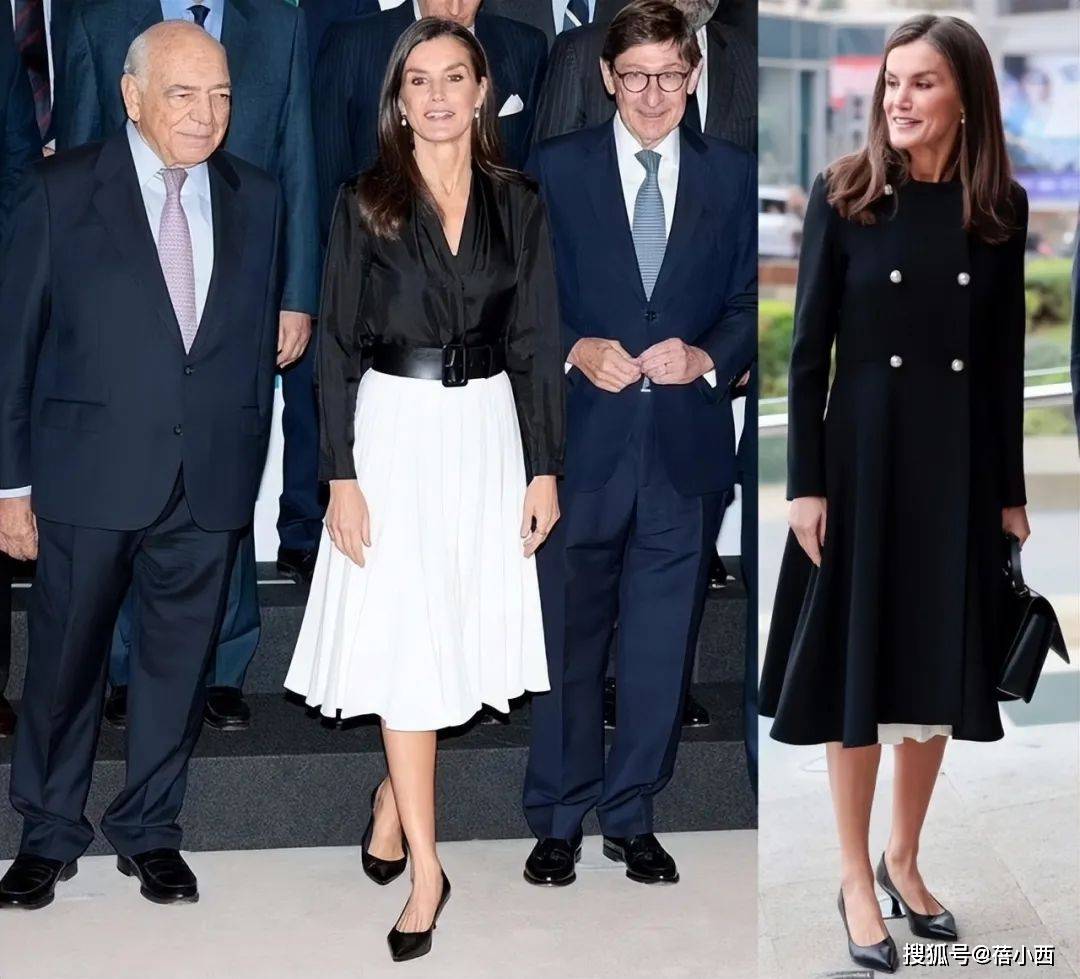 莱蒂齐亚还特别喜欢用黑白配色来打破色彩的单调感。她的一套黑色衬衫与白色半身裙的搭配,完美诠释了这一永恒的经典配色。无论是职场还是休闲场合,黑白配都能轻松打造简约却不失优雅的造型,展现穿着者的独特魅力。