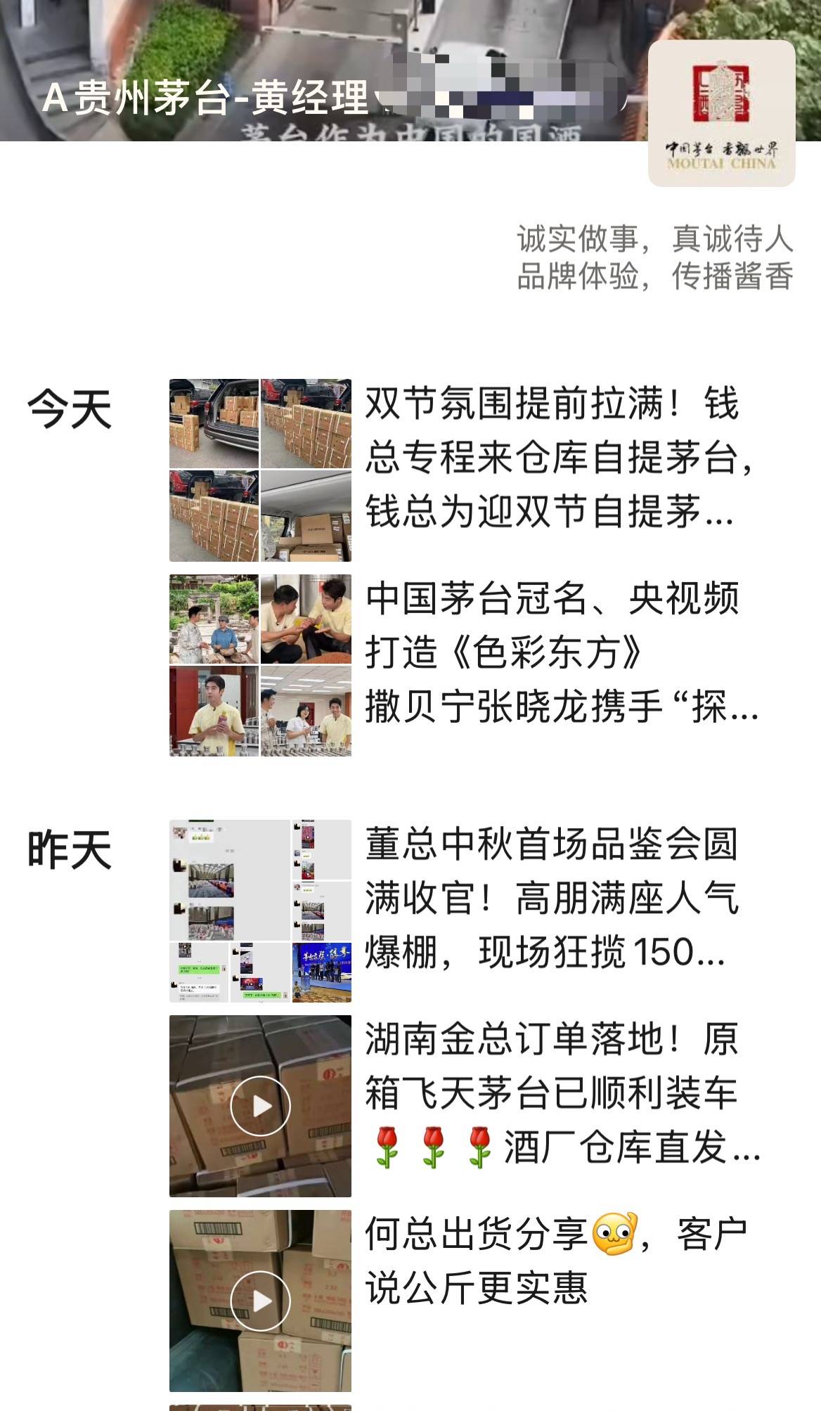 记者扫码进行初步登记后不久,就接到自称“贵州茅台黄经理”的电线元企业认证费,认证通过后可平价申购飞天茅台,最低10箱起订”,并要求添加微信进一步核对资质。其微信朋友圈充斥“X总到酒厂自提茅台”“X总订单落地,原箱茅台装车发货”等所谓的“企业申购成功案例”,极具迷惑性。