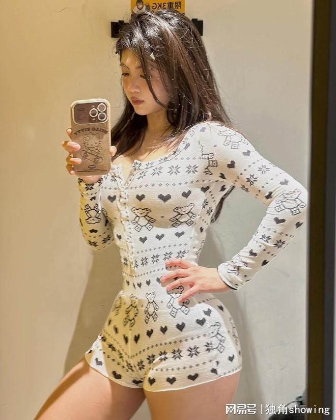 对于强行搭配羽绒服,穿搭于室外的话,个人不建议,毕竟其款式还是有别日常穿搭的衣服,此款连体服还是适用于居家穿着,如果你是个爱运动的人,居家运动时穿着还是不错的选择,其款式不次于健身服。比起健身服来说,此款连体服更加舒适。
