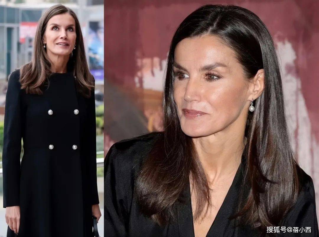 在寒冷的季节,莱蒂齐亚的黑色双排扣大衣更是充满了经典魅力。大衣剪裁得体,流畅的线条与简约的设计让她看起来优雅大方。黑色是任何时尚单品中最百搭的颜色,与任何搭配都能展现出时尚感。而双排扣设计则为整体造型增添了一份复古气息,既有韵味又不失现代感。