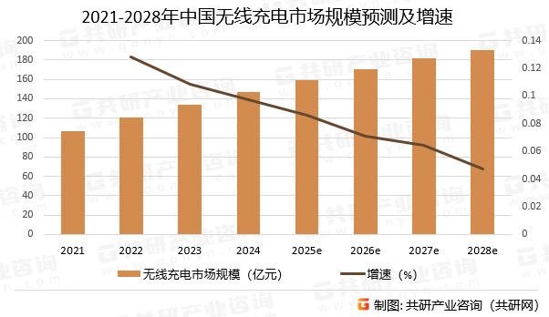 通过优化线圈设计、改进谐振腔结构以及采用高频电磁波传输技术,无线充电的电能转化率从早期的60%提升至70%-80%,逐步接近有线年中国无线充电市场规模预测及增速